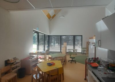 In der Kita Arche Kunterbunt, die im August 2023 eröffnet wurde, werden Kinder im Alter von einem Jahr bis zur Einschulung in insgesamt drei Gruppen betreut.
