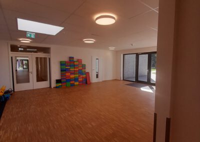 Zwischen 07:30 Uhr und 16:00 Uhr spielen, essen und lernen die Kinder wahlweise vormittags oder ganztags in sehr großzügigen, hellen Gruppen- und Nebenräumen. Nicht nur räumlich ist unsere Kindertagesstätte eng mit der Josef-Grundschule verbunden. Wir pflegen eine enge Kooperation und einmal wöchentlich besuchen unsere Kindergartenkinder die Sporthalle der Grundschule.