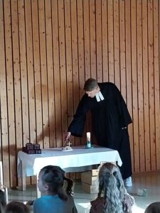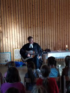 Pastor de Vries hat uns die Ostergeschichte erzählt, dass Jesus seinen Jüngern die Füße gewaschen hat. Und dass er gestorben ist, aber danach auferstanden ist. Es war so spannend, alle haben aufmerksam zu gehört. Selbst Susanne hörte gespannt zu und hat danach ein paar Fragen gestellt.