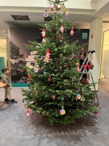 In den letzten Wochen haben alle Kinder aus der Kita Lutherherz fleißig Tannenbaumschmuck gebastelt. Heute durften die Vorschulkinder die OLB besuchen und den Tannenbaum schmücken. Aber bevor es los ging haben sich die Kinder bei einem Getränk und ein paar Keksen gestärkt. Das hat so lecker geschmeckt!